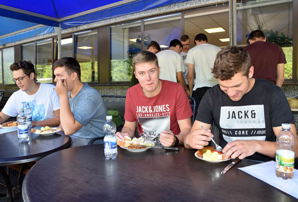 Um 11:00 Uhr verabschiedeten wir die Eltern, zeitgleich fand die Anprobe der Arbeitskleidung sowie der Arbeitsschuhe statt. Zur Mittagszeit trafen sich dann alle Azubis sowie die Ausbilder zum gemeinsamen Grillen vor der Kantine. Nach der Stärkung ging es weiter mit ein paar Kennenlernspielen. Zum Schluss räumten alle gemeinsam auf und starteten um 14.00 Uhr in das Wochenende.